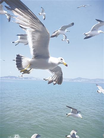 万鸟岛上空,海鸥环绕。张汝峰 摄